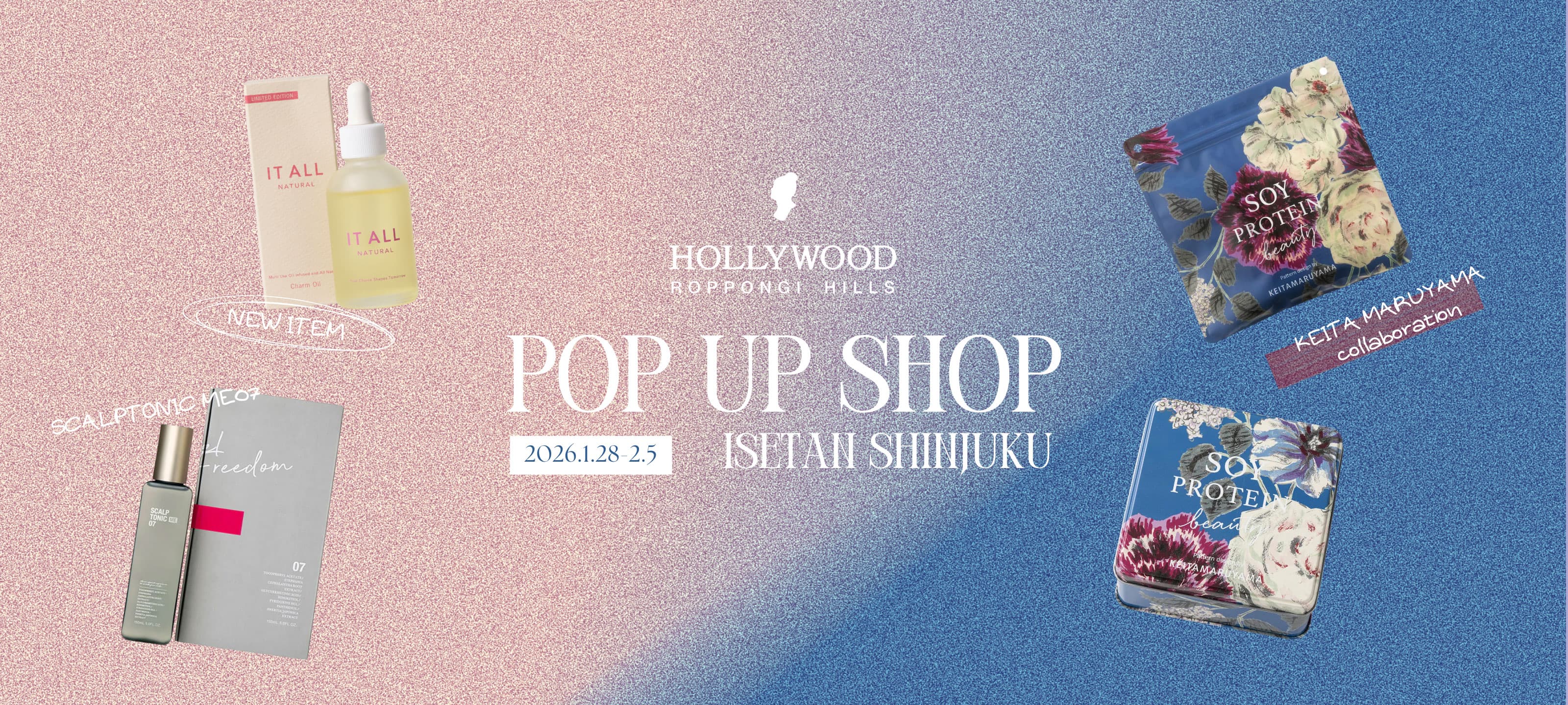 花と自然のぬくもりを感じるIT ALL NATURALブースでは、香りやテクスチャを実際に手にとってお試しいただけます。土日には毛髪診断イベントも開催予定です。さらに、人気で新しくなった大豆プロテイン「SOY PROTEIN beauty + ソイプロビューティ プラス」やヘアケア商品など、バレンタイン目前に合わせた気になるアイテムやキットを豊富に用意して、美と健康のための空間としてオープンいたします。