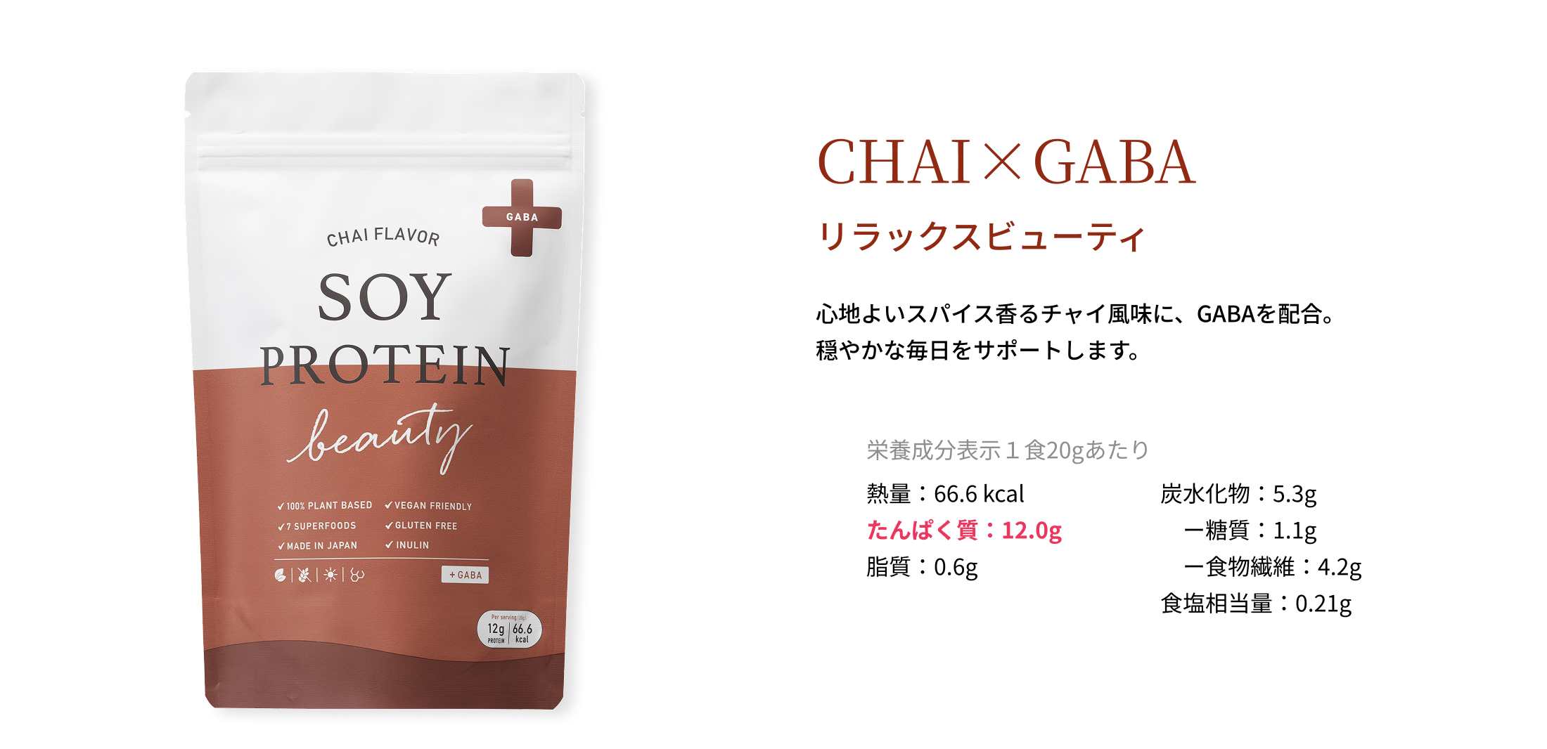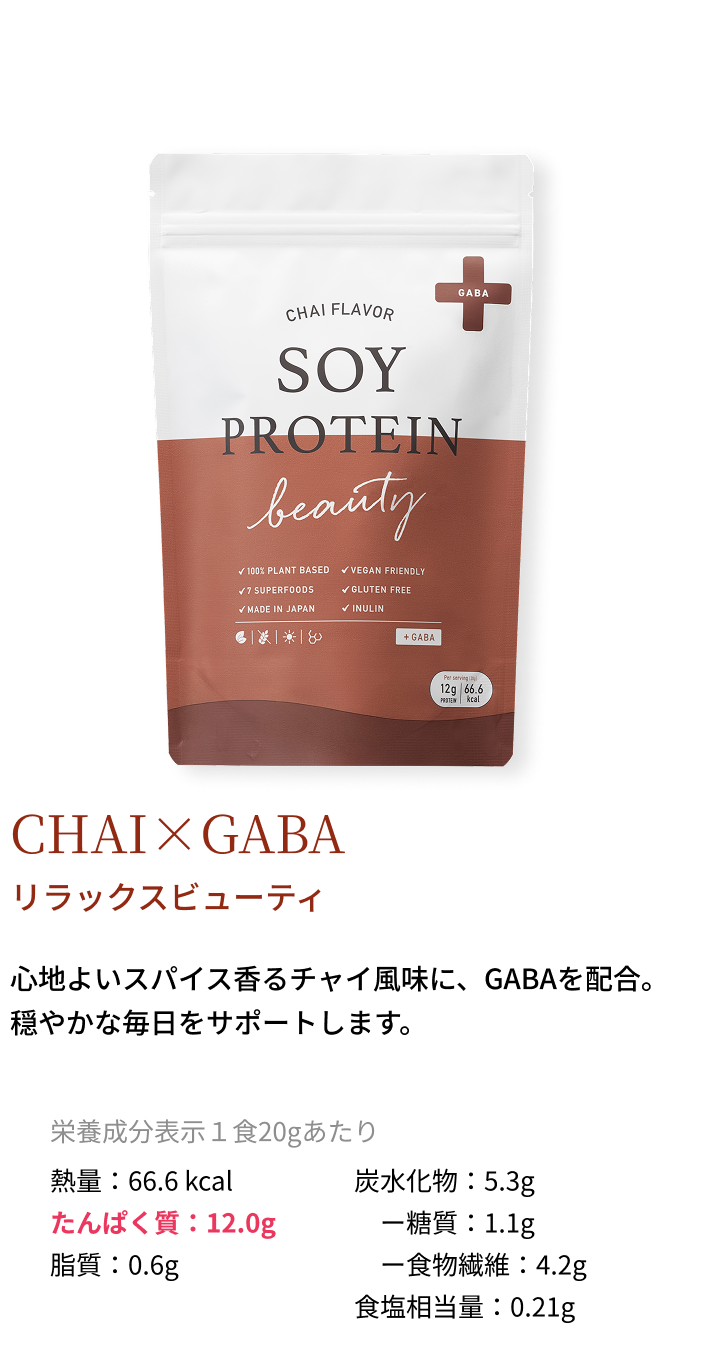 心地よいスパイス香るチャイ風味に、GABAを配合。穏やかな毎日をサポートします。