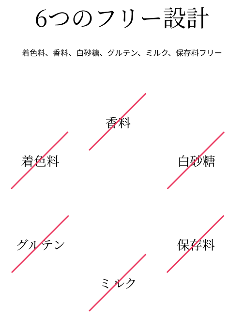 着色料、香料、白砂糖、グルテン、ミルク、保存料フリー